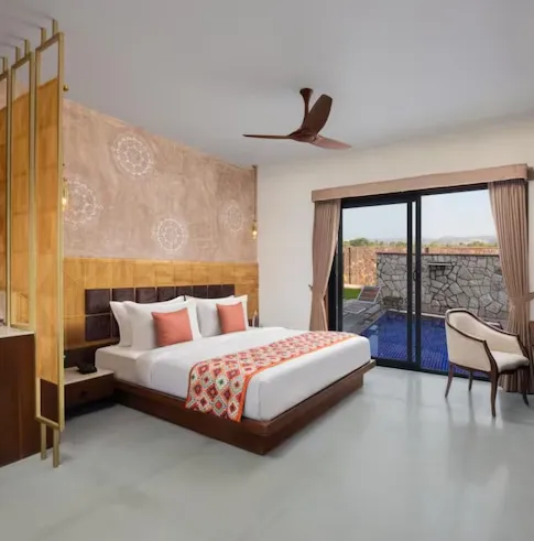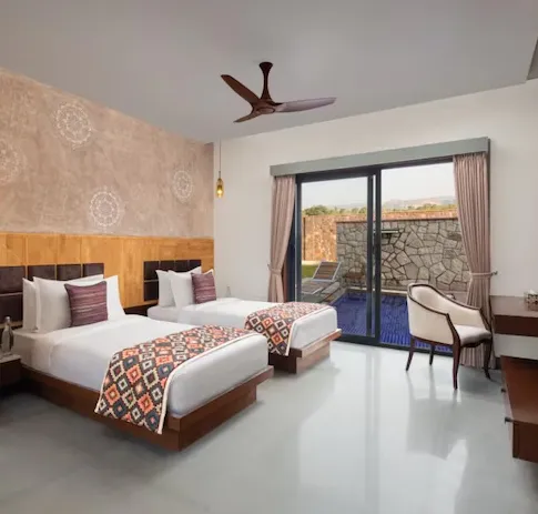 Rooms at Bookmark Resorts Jogi Mahal Ranthambore are crafted to support easy-going stays that suit families and mixed-purpose visitors alike. The Premium Twin Room provides functional space and restful layouts, while the Luxury Twin Room with Plunge Pool and Luxury Room with Plunge Pool elevate your experience with private water features that become highlights of your leisure time. Interiors are designed with clarity and comfort in mind, allowing for both shared moments and personal downtime after full days out.