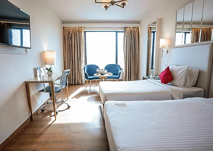 The rooftop swimming pool offers a relaxed pause above the city, especially welcome after a packed schedule. A well-equipped gym supports daily routines without the need to step out, while the in-house restaurant focuses on consistent, well-prepared meals suitable for both solo dining and informal professional conversations.