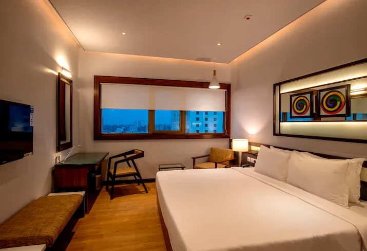 The hotel features modern rooms with clean interiors, comfortable bedding, dedicated workspaces, and essential in-room amenities that ensure a pleasant and productive stay. High-speed Wi-Fi, climate control, and thoughtful room layouts allow guests to relax or work with ease. The overall ambiance reflects a perfect blend of modern design and functional comfort.